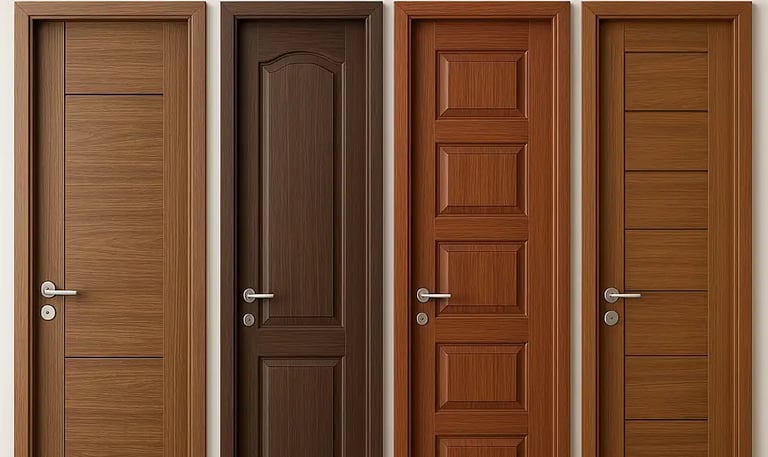 Flush doors are simple, strong, and widely used doors with a smooth surface, suitable for all types of interiors.