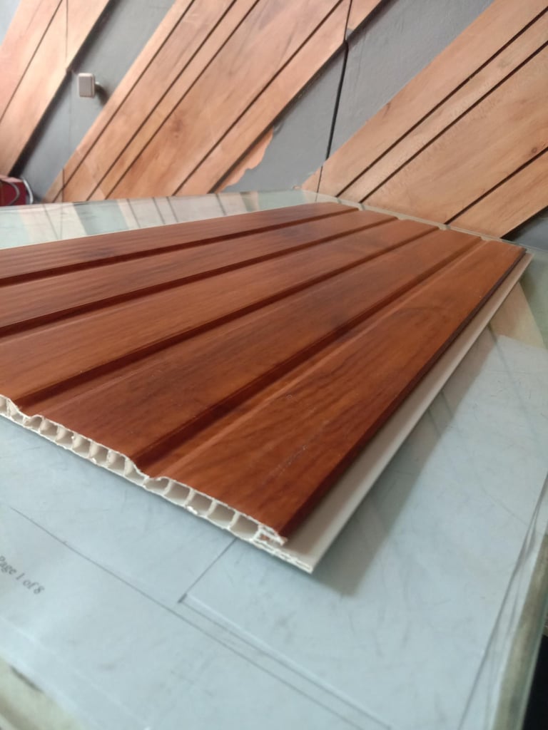 PVC panels are a lightweight, waterproof, and budget-friendly option for modern interiors. Perfect for quick installations, they are widely used in both residential and commercial spaces. Available Size: 10ft x 10 inch